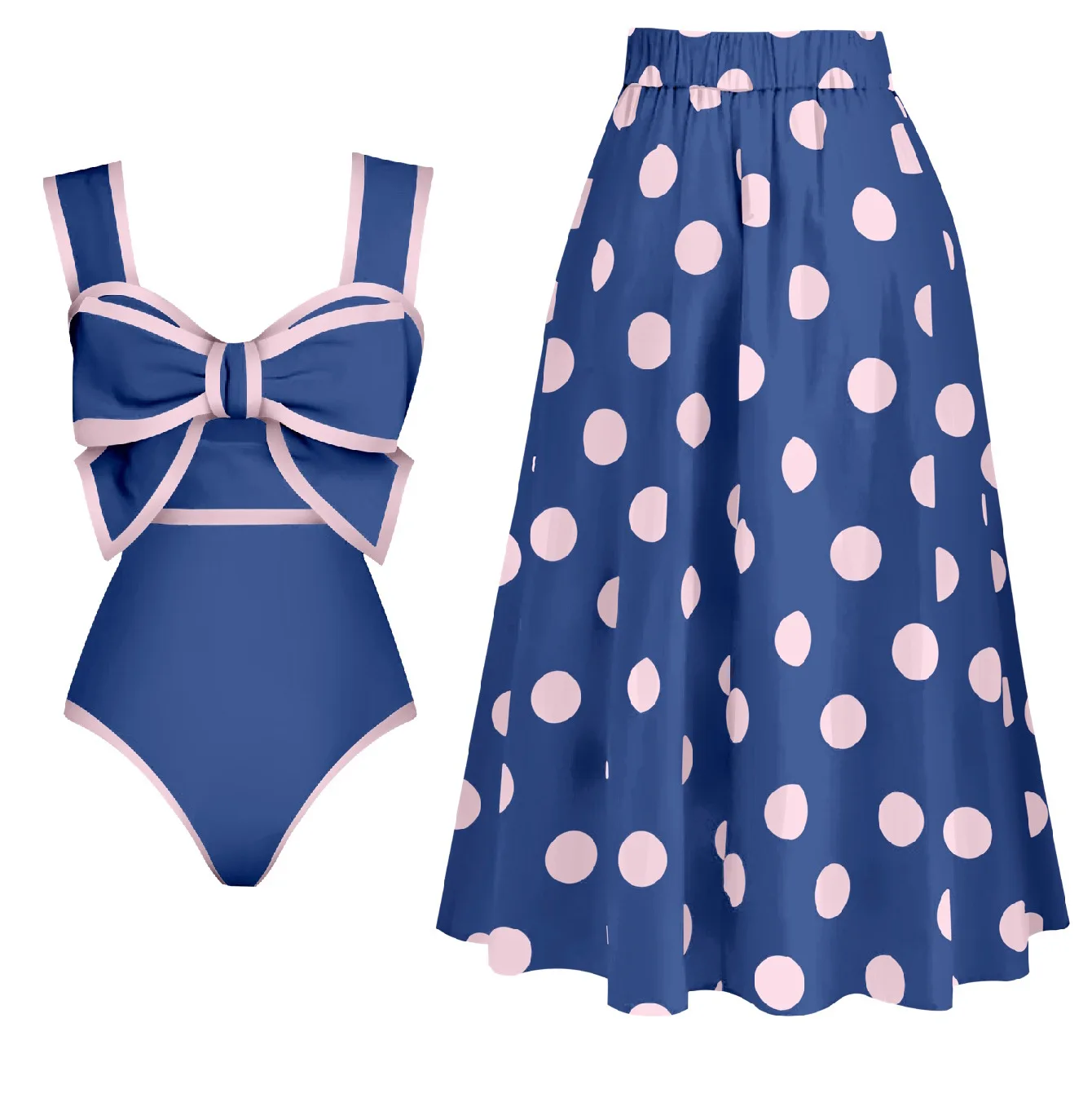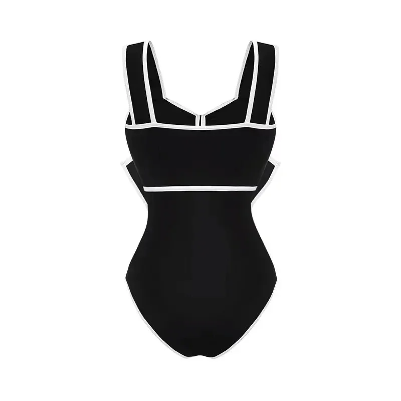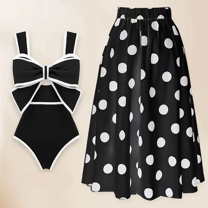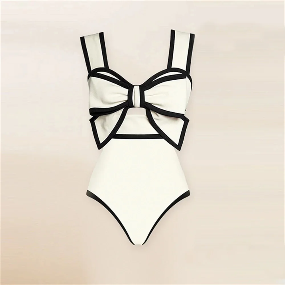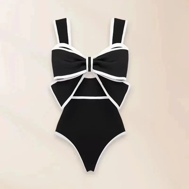 骨格ストレート モノキニ ワンピース水着(スカート・蝶結び/モノトーン)