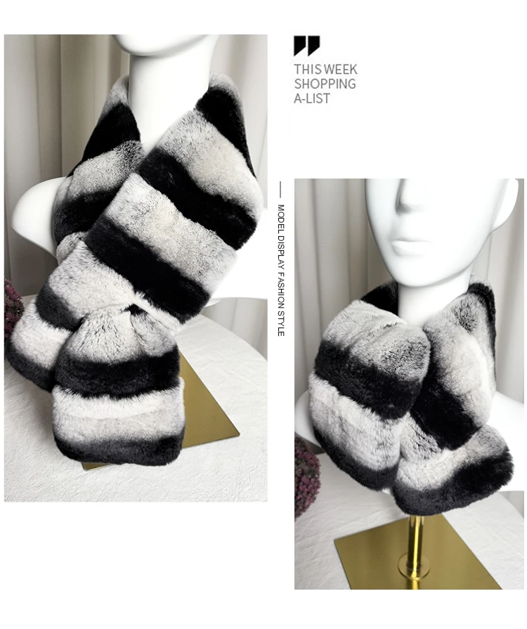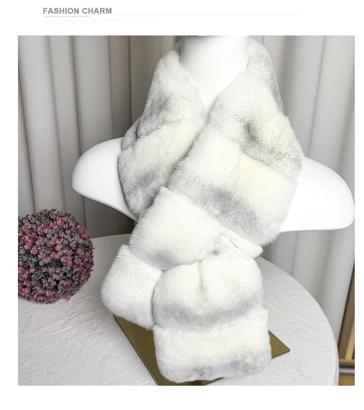 Crafted from natural rex rabbit fur, this scarf offers unparalleled warmth and luxury for the colder months.