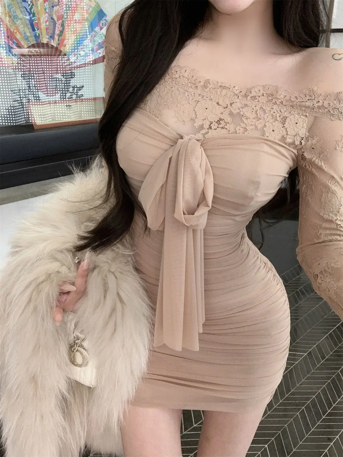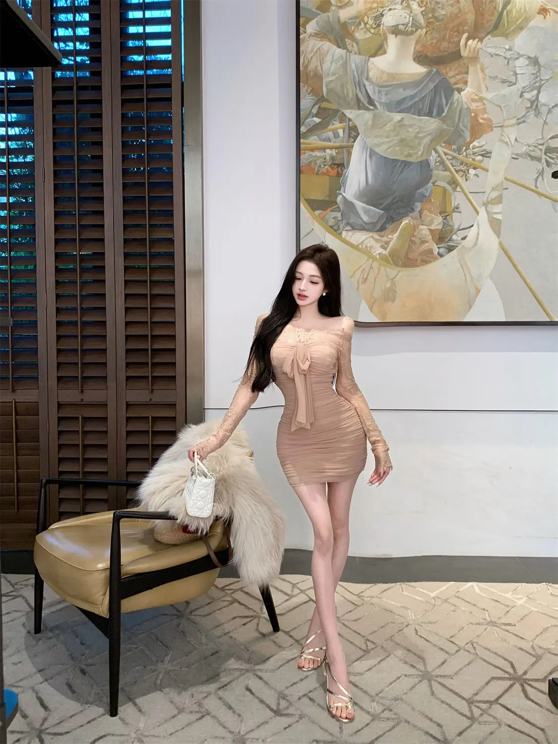 ガガオク-女性のためのエレガントでセクシーなタイトなドレス,裸の肩,包帯,ミニドレス,柔らかくて無地,痩身