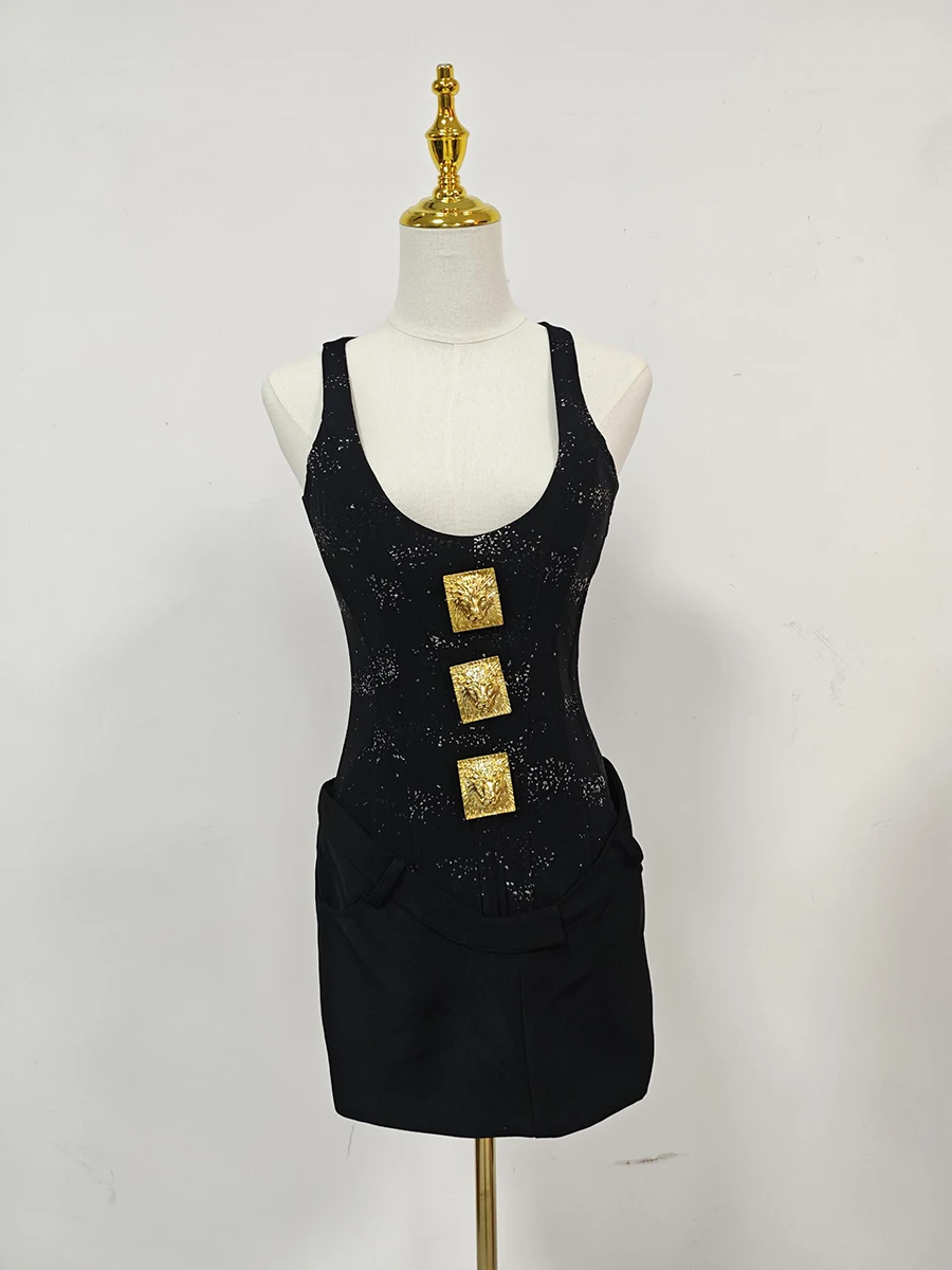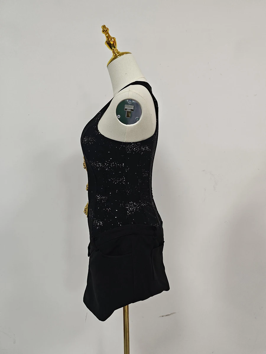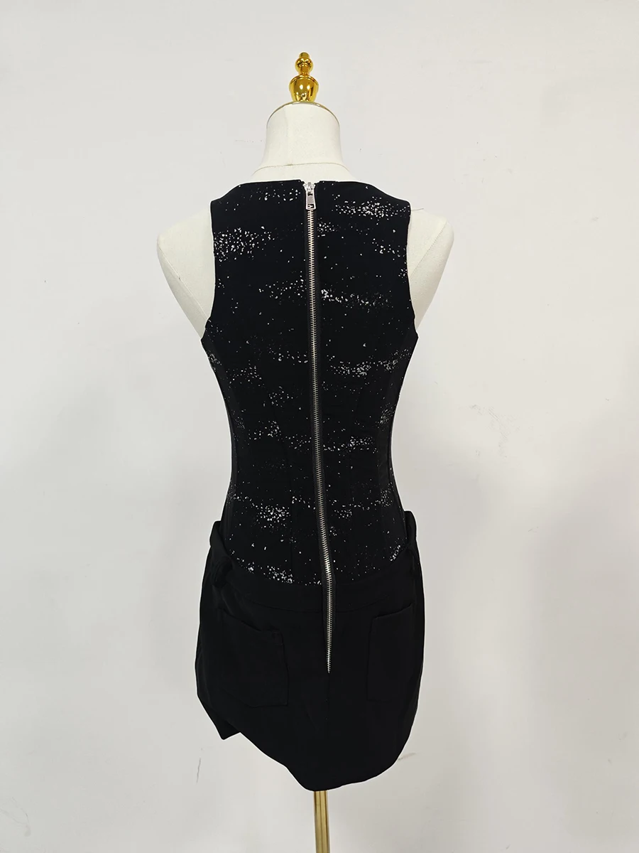 骨格ストレート スクエアネック スパンコール スリムドレス(ノースリーブ)