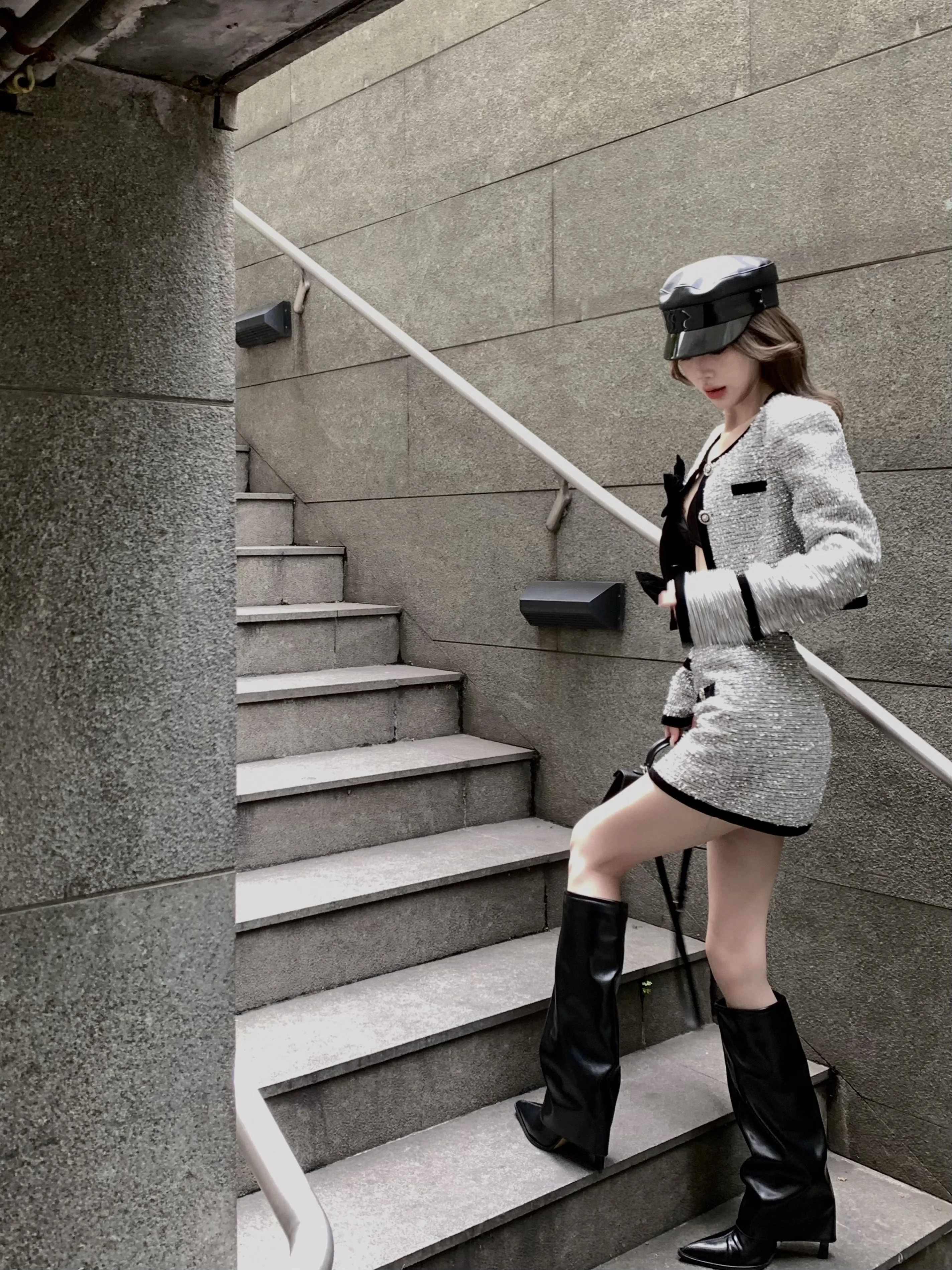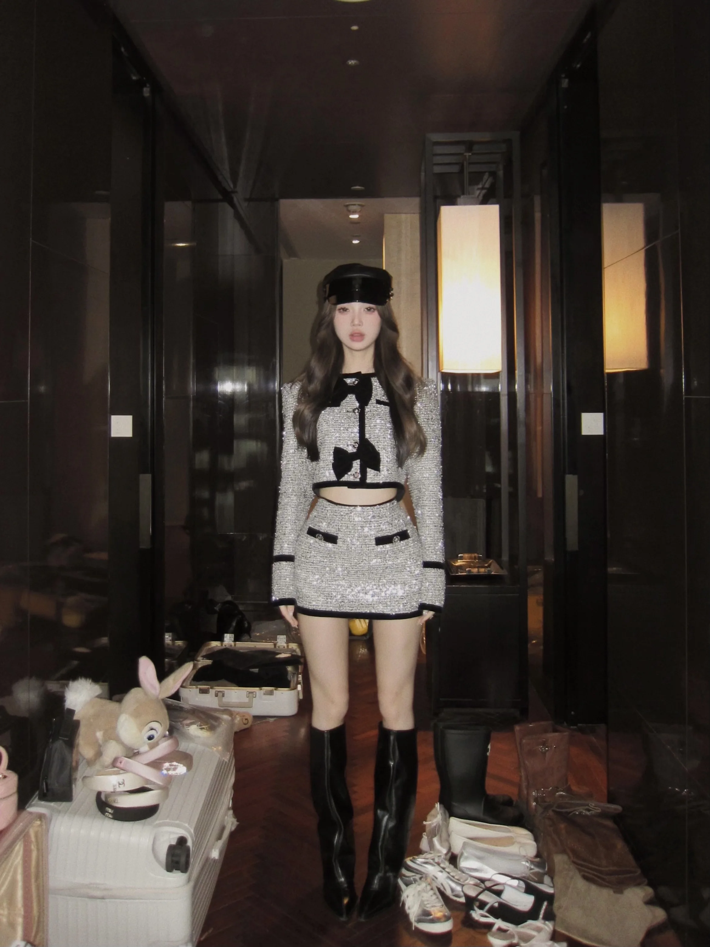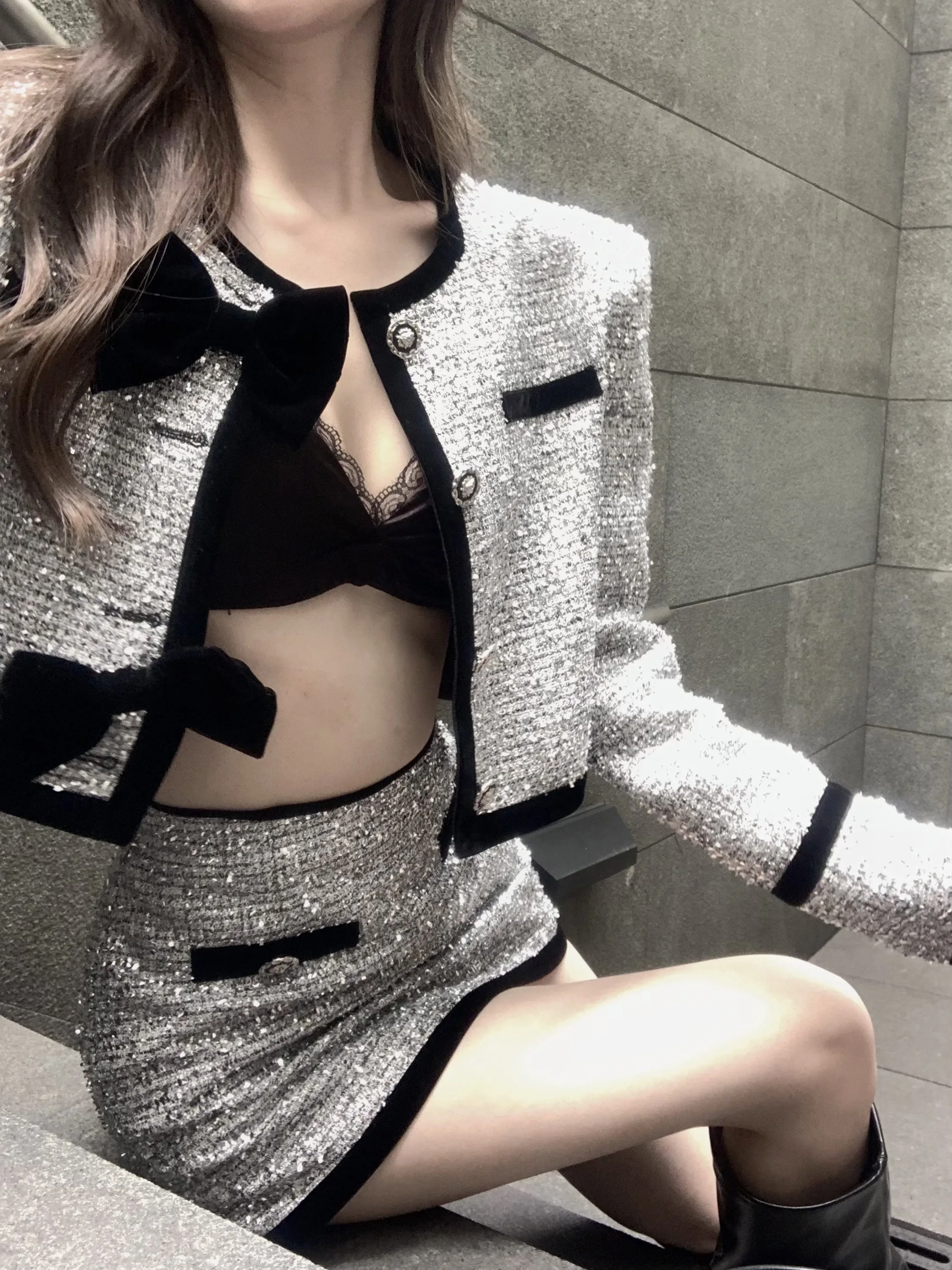 女性のための柔らかい韓国のハイウエストスカート,女の子のための2ピースのスーツ,長袖,リボン付き,ファッショナブル,秋