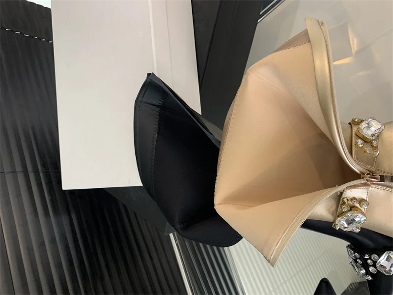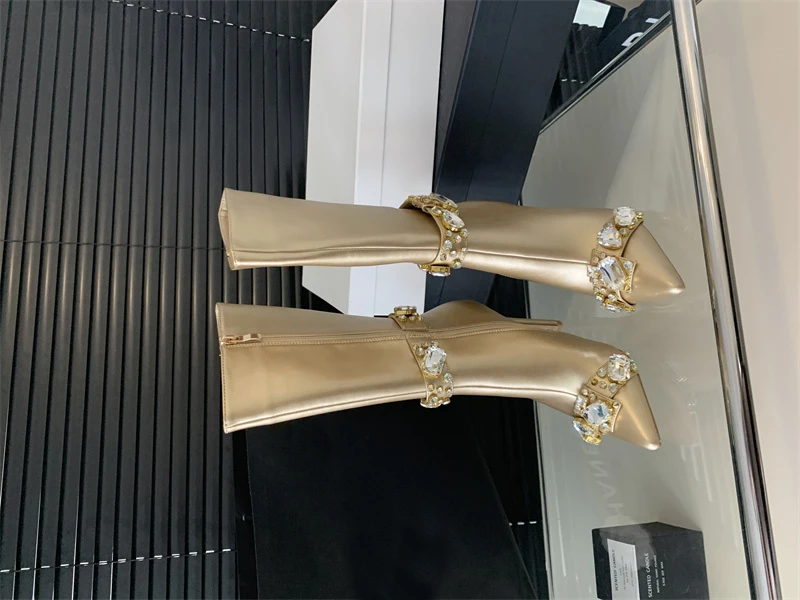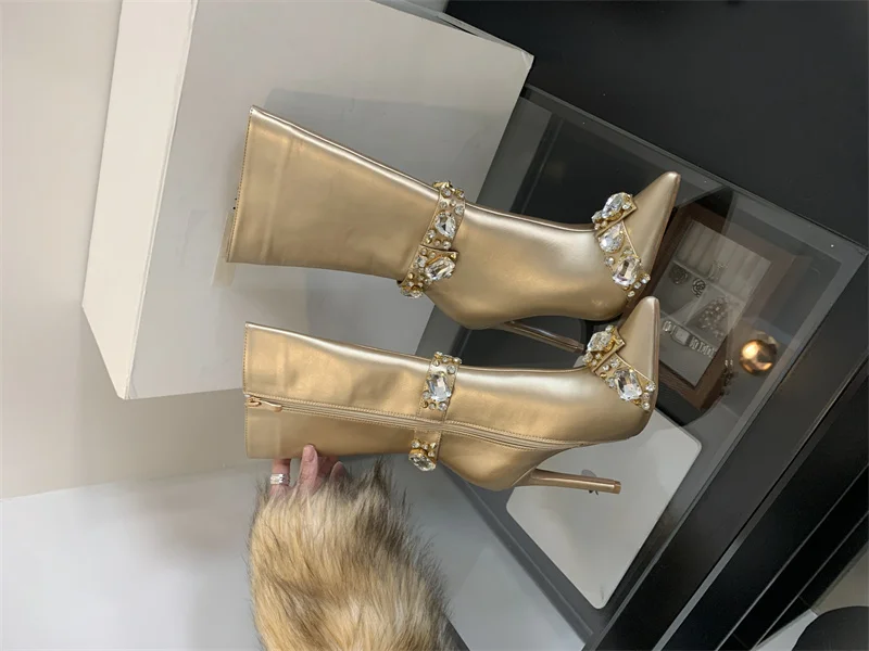 Liyke-女性用クリスタルジェムリベットブーツ,ジッパー付きアンクルブーツ,セクシーな先のとがったつま先の靴,パーティー用のストリッパーヒール,秋冬ファッション