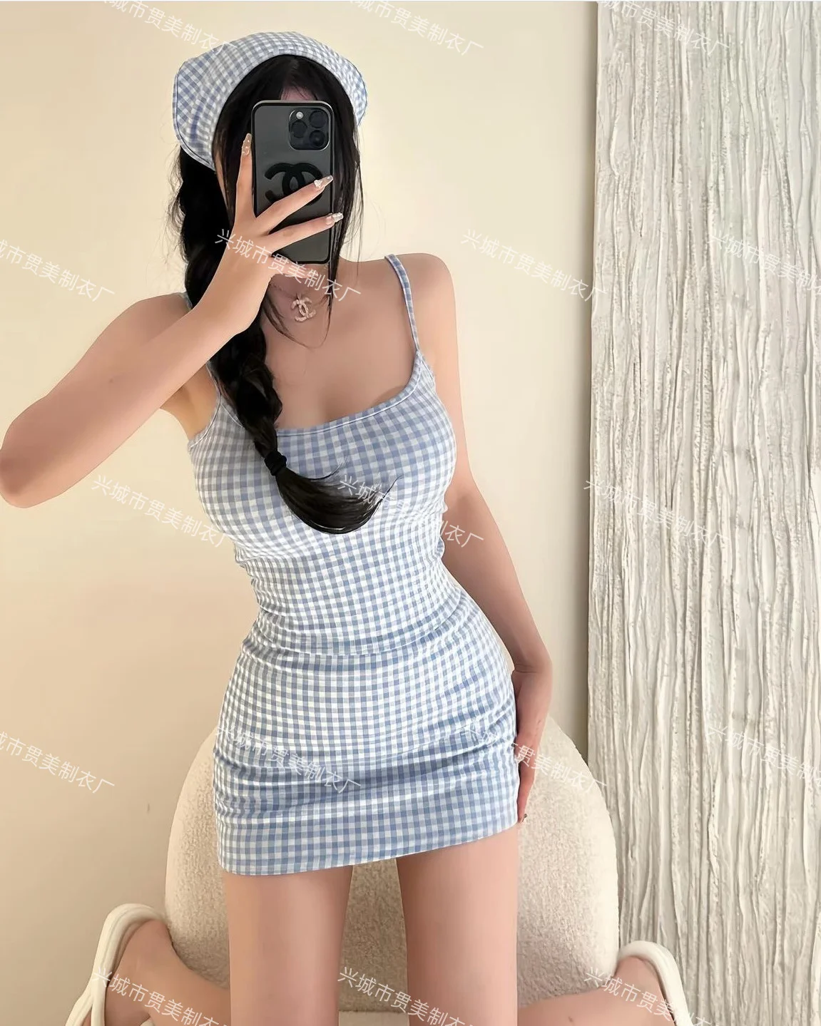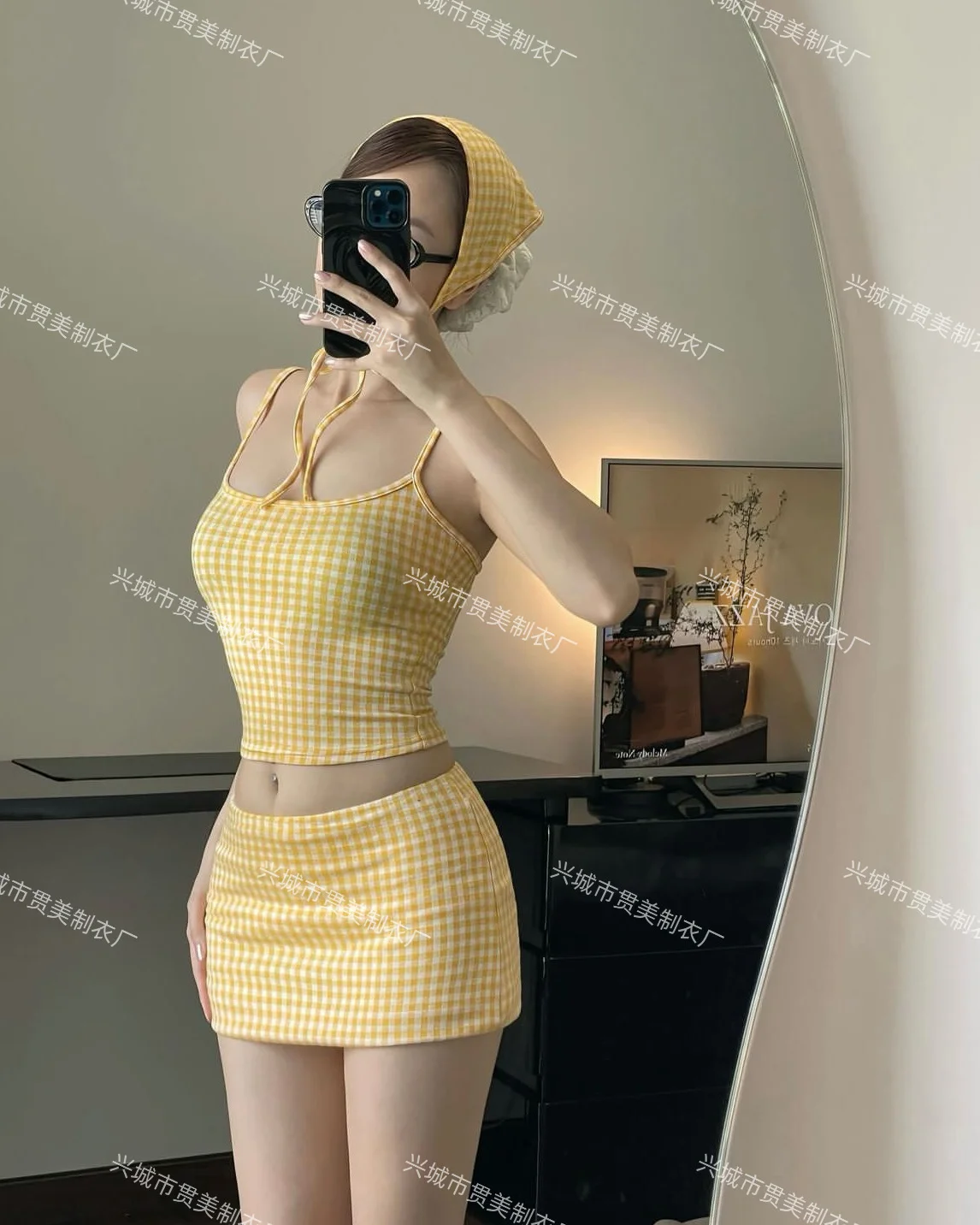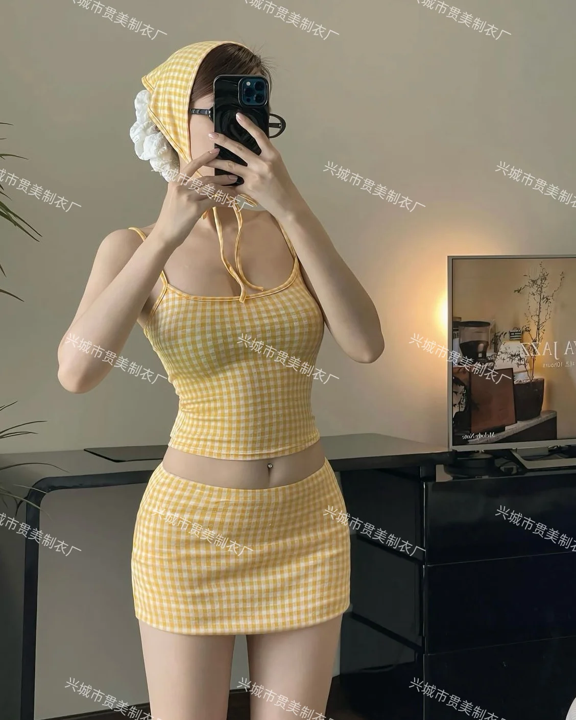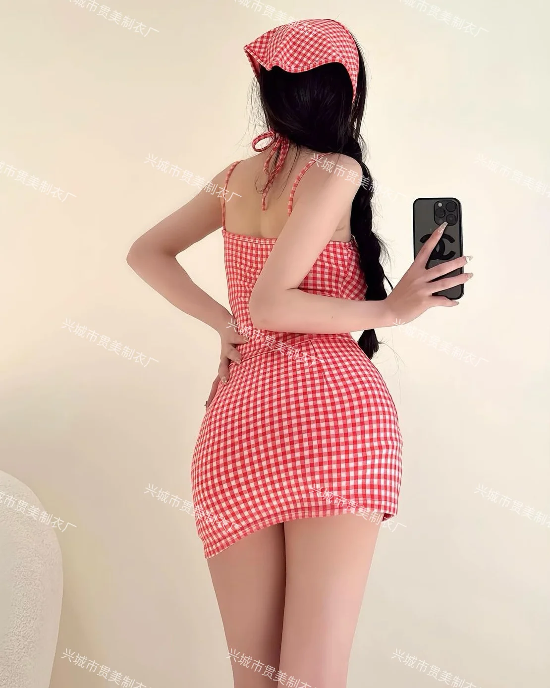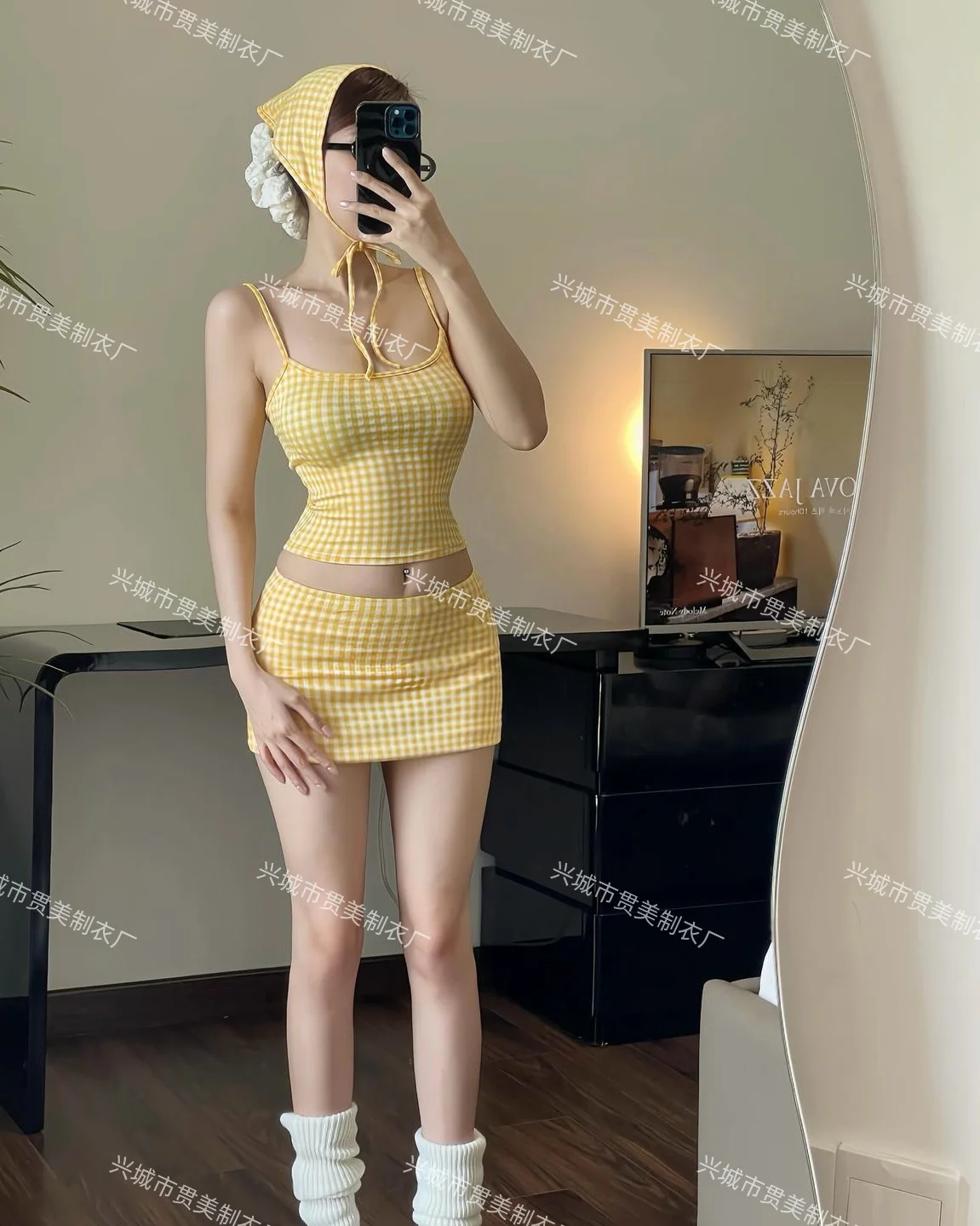 骨格ストレート チェック柄 3点セット ビキニ(カバーアップ)