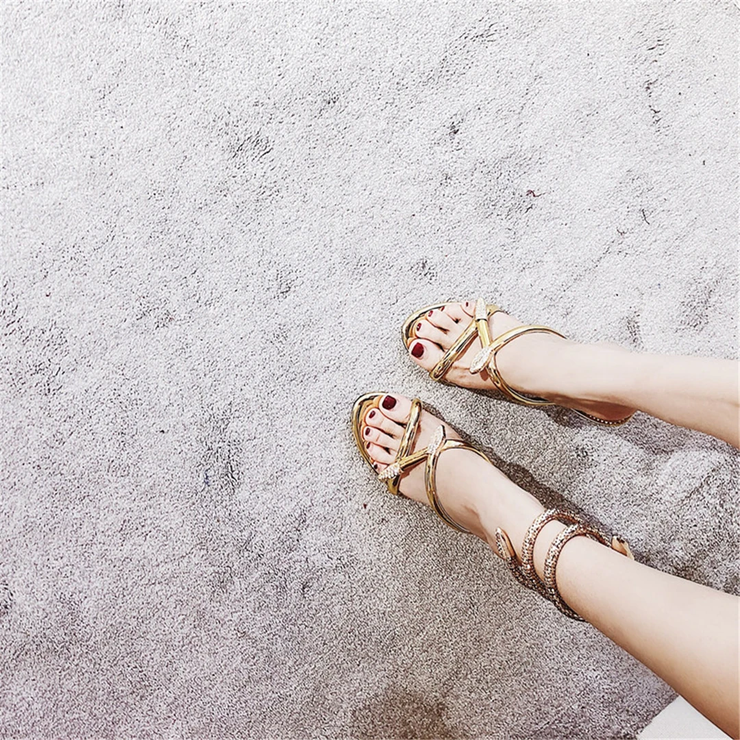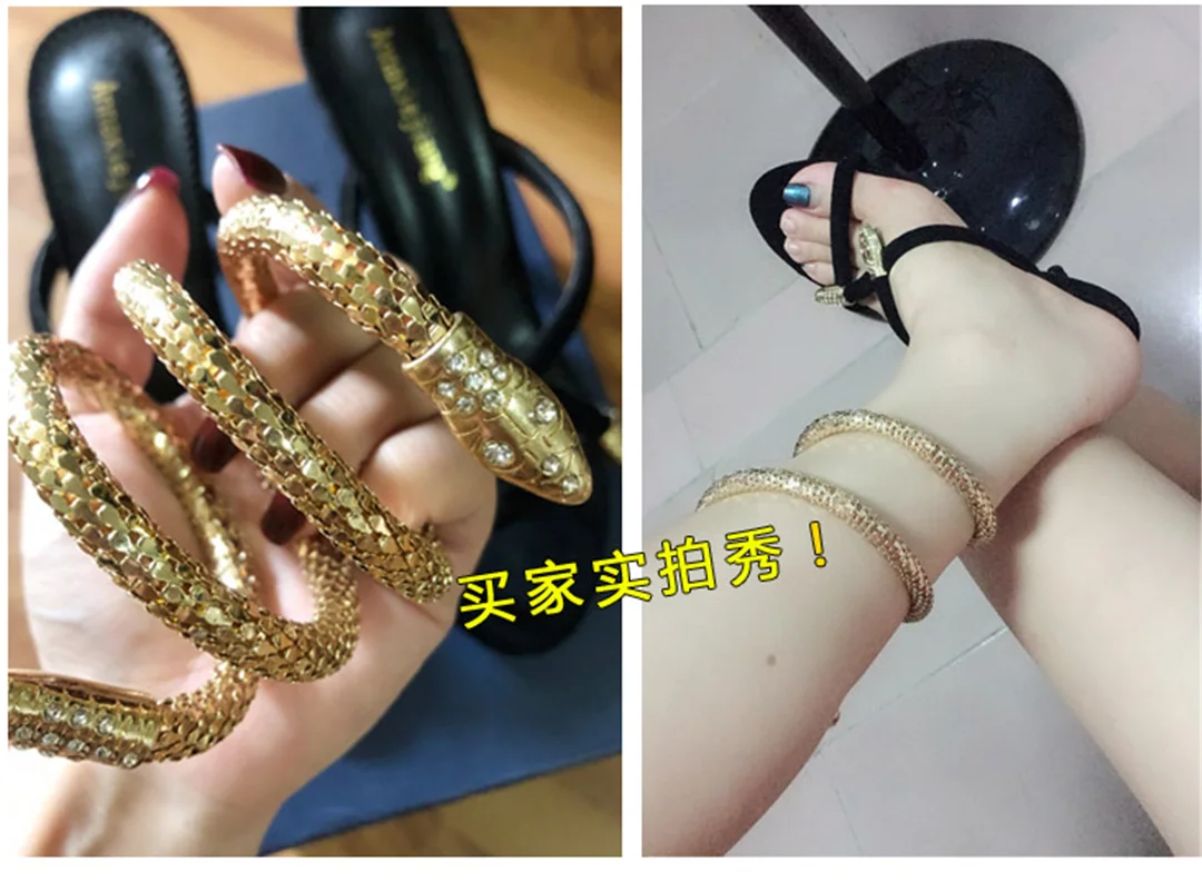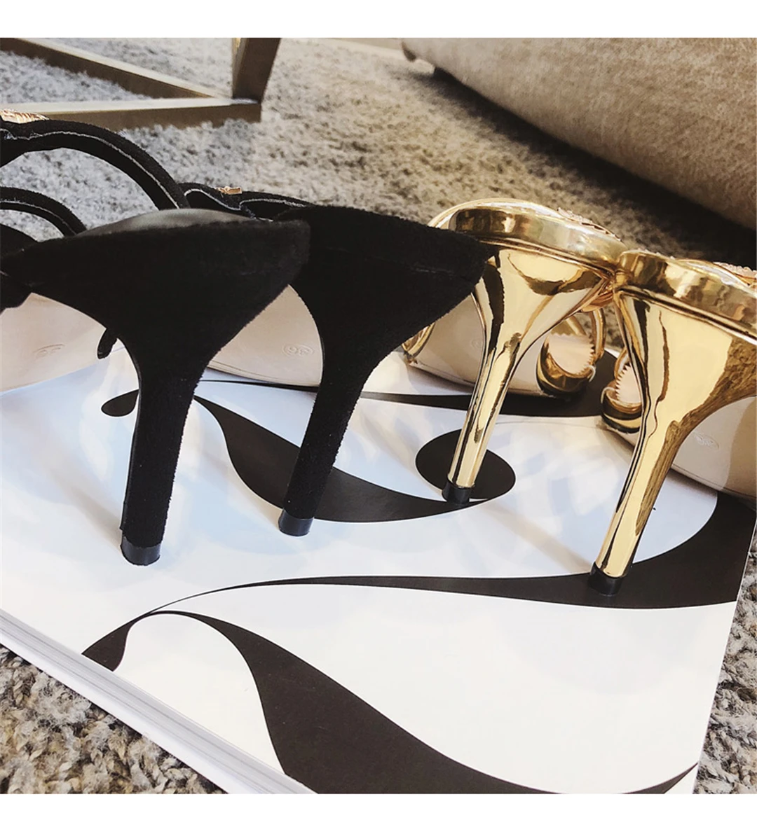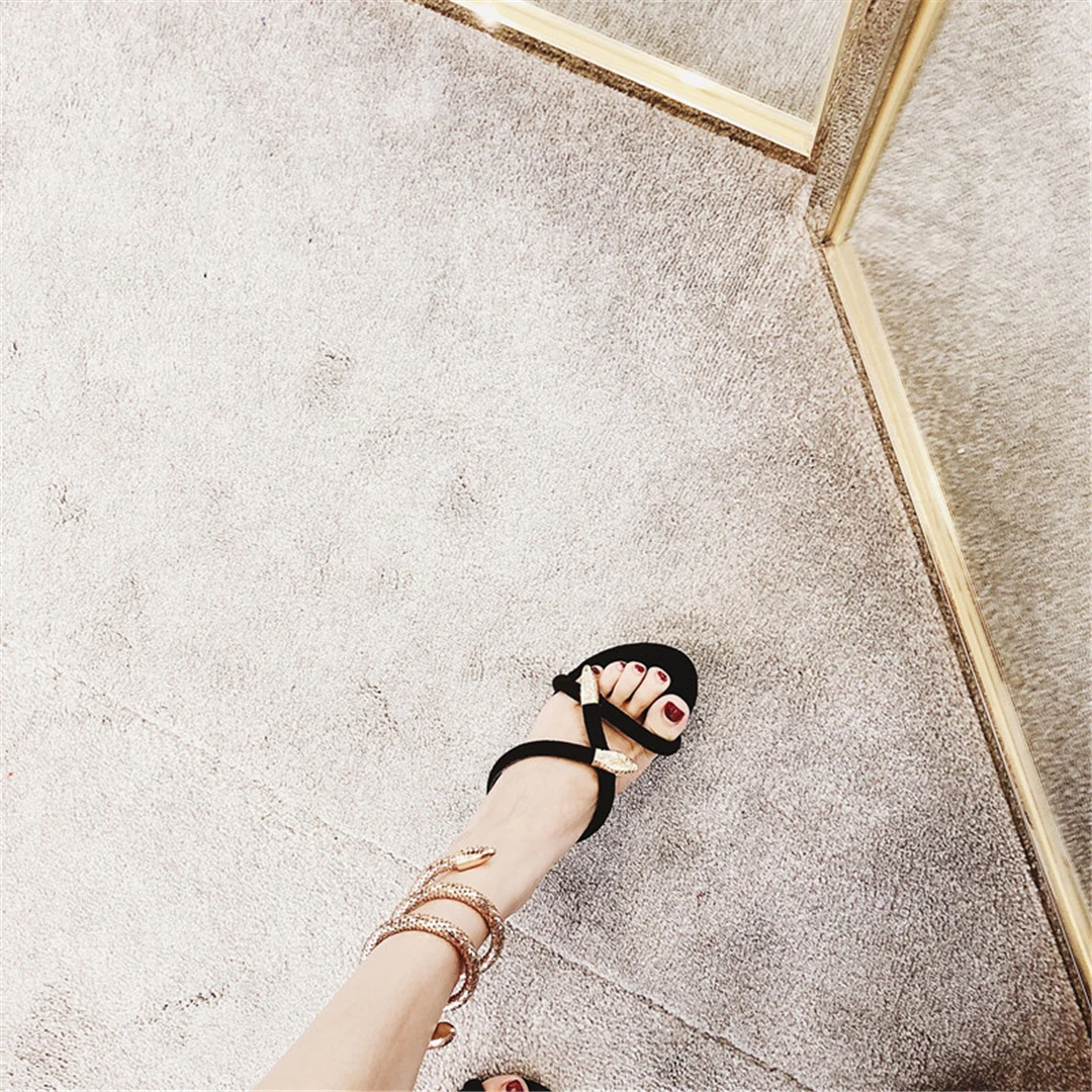 夏の新スエードパテントレザー金属ヘビ形ラップセクシーなファッションスリッパ薄型ハイヒール宴会ドレス女性のサンダル