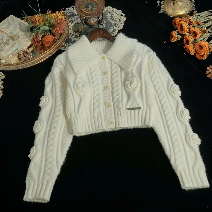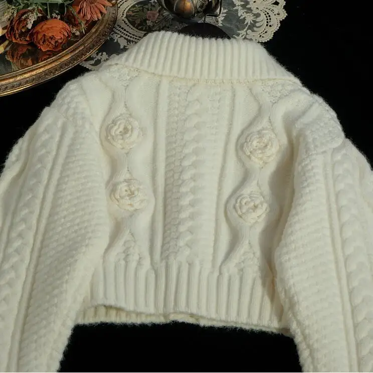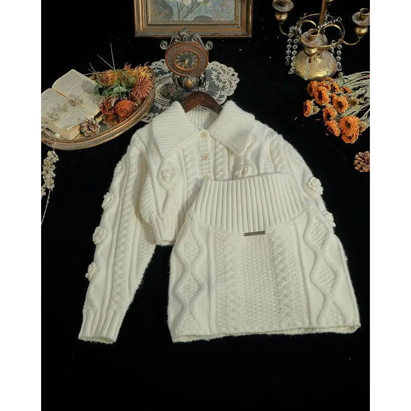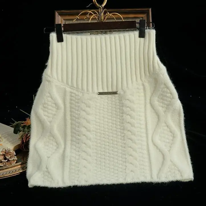 冬フレンチレトロ甘い白セータートップハイウエスト痩身ラップヒップミニスカートセットニットウェアツーピースセット女性服