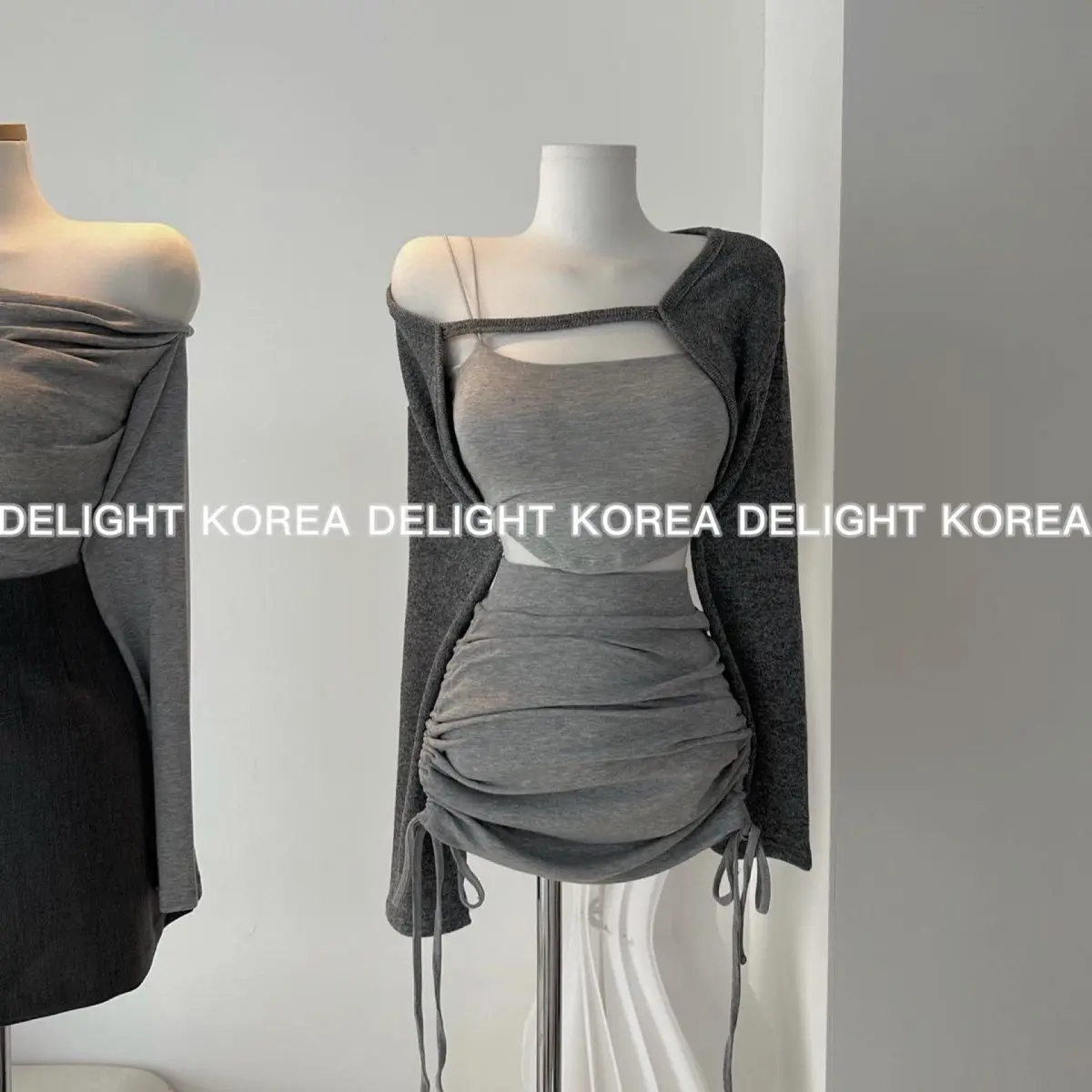 女性 3 点セットの優しいスタイル夏レトロスタイルサスペンダートップ巾着ショートスカートセットトレンディなソリッドカラーハイストリート
