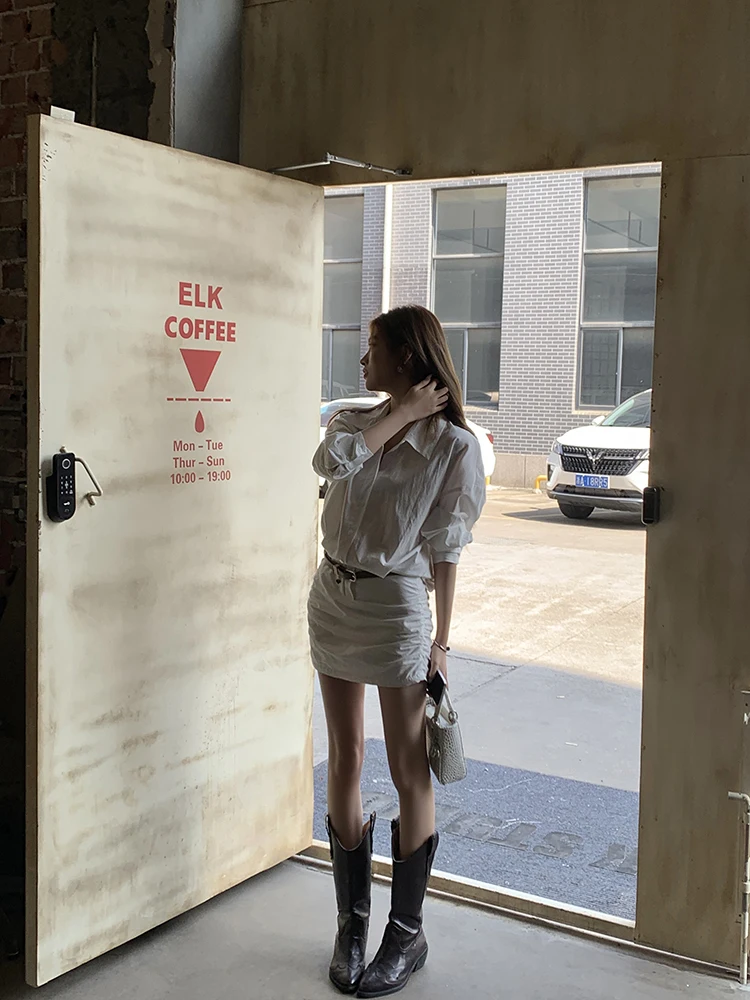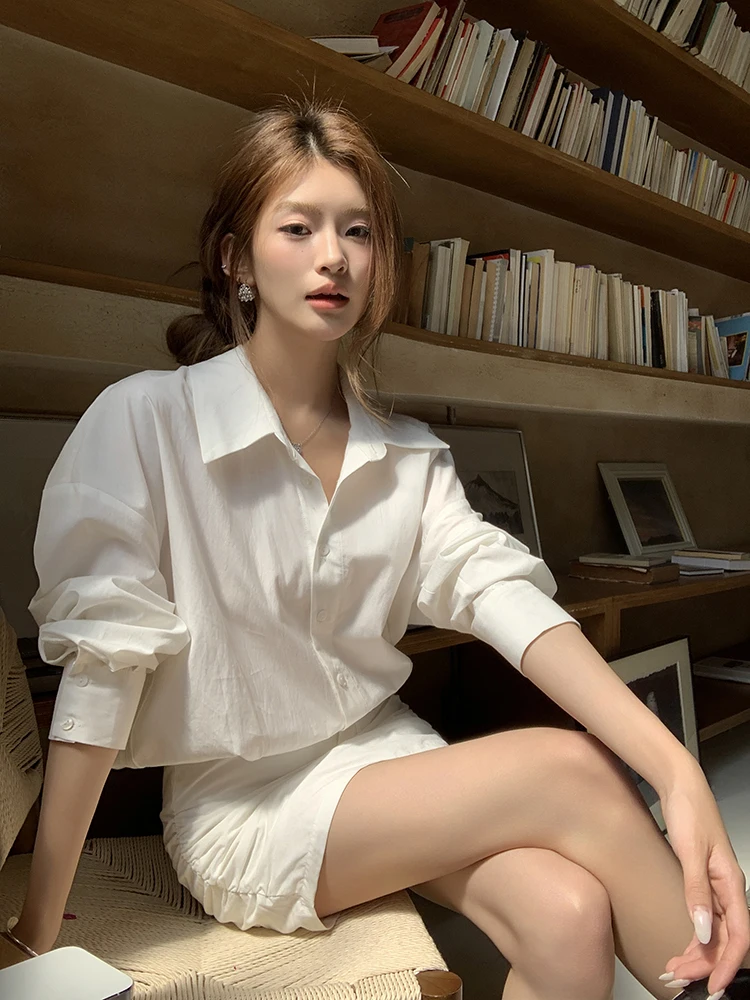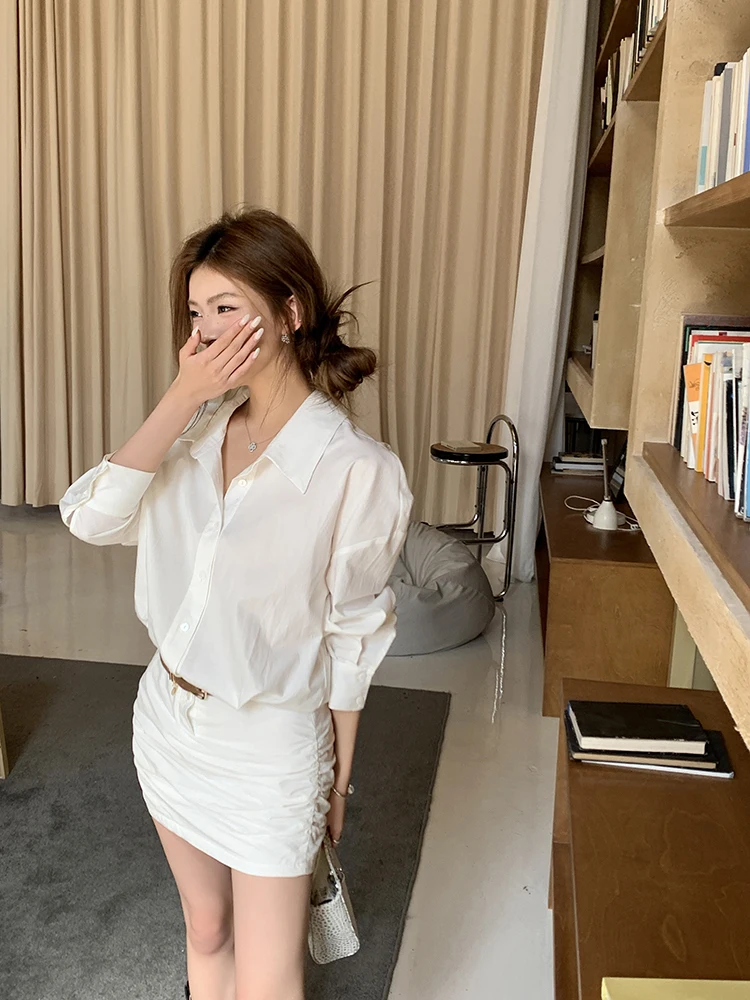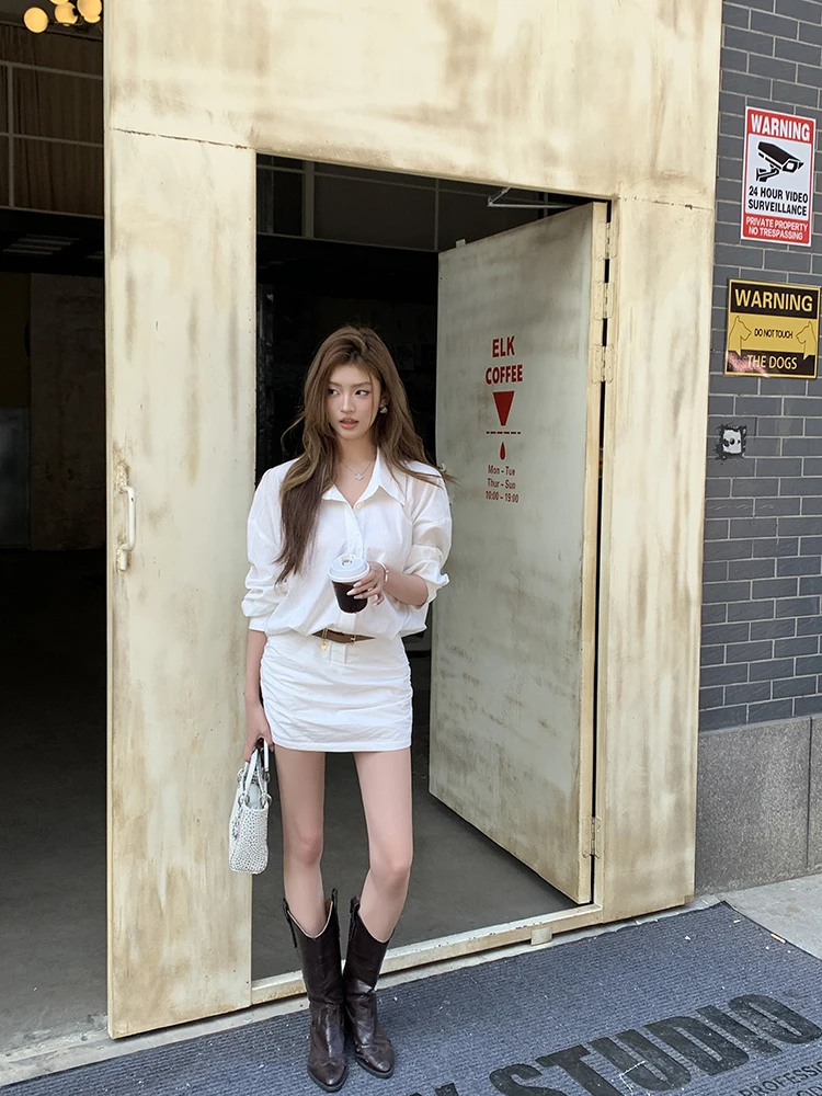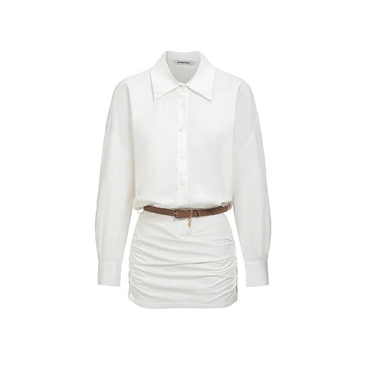 レディース長袖ホワイトシャツワンピース ベルト付き カジュアル シンプル オフィスレディ ミニ丈ワンピース 2025 夏秋 ファッション 女性服