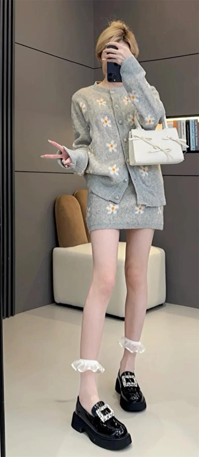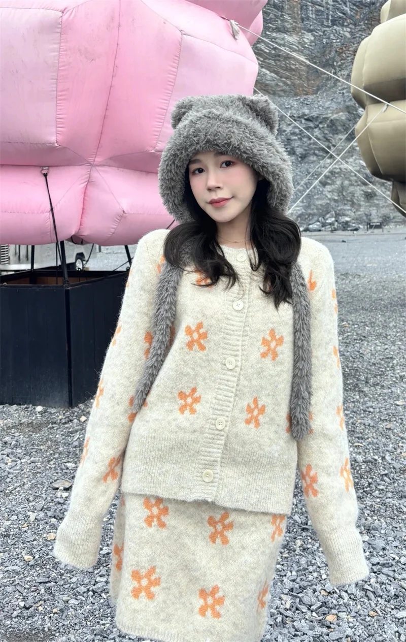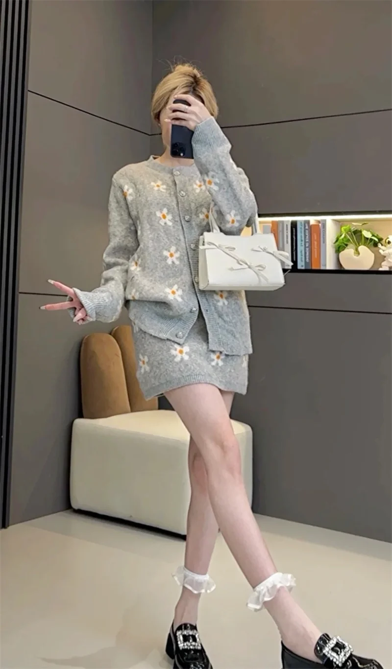 レディースセット 2025 秋新作 ジャカード長袖カーディガン ニットコート ミニスカートセット カジュアルファッション 可愛い 個性的